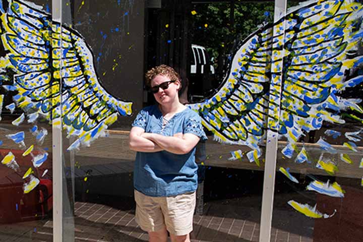 As she flicked blue and gold paint onto the glass windows outside D-Wing last summer, the splatters emulated the droplets of water dispersing from an osprey’s feather during a mid-flight shake.
