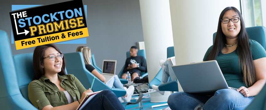 The Stockton Promise covers the remaining balance of an eligible student's tuition & fees* after all institutional grants and scholarships as well as any federal and state grants and scholarships are applied. Students eligible for the Stockton Promise will not be required to take out loans to cover their tuition & fees.