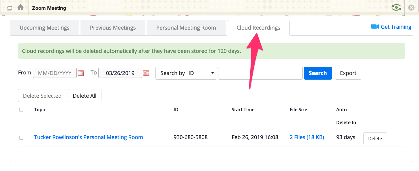You will also find “Cloud Recordings” where meeting recordings are stored and can be downloaded for 120 days.