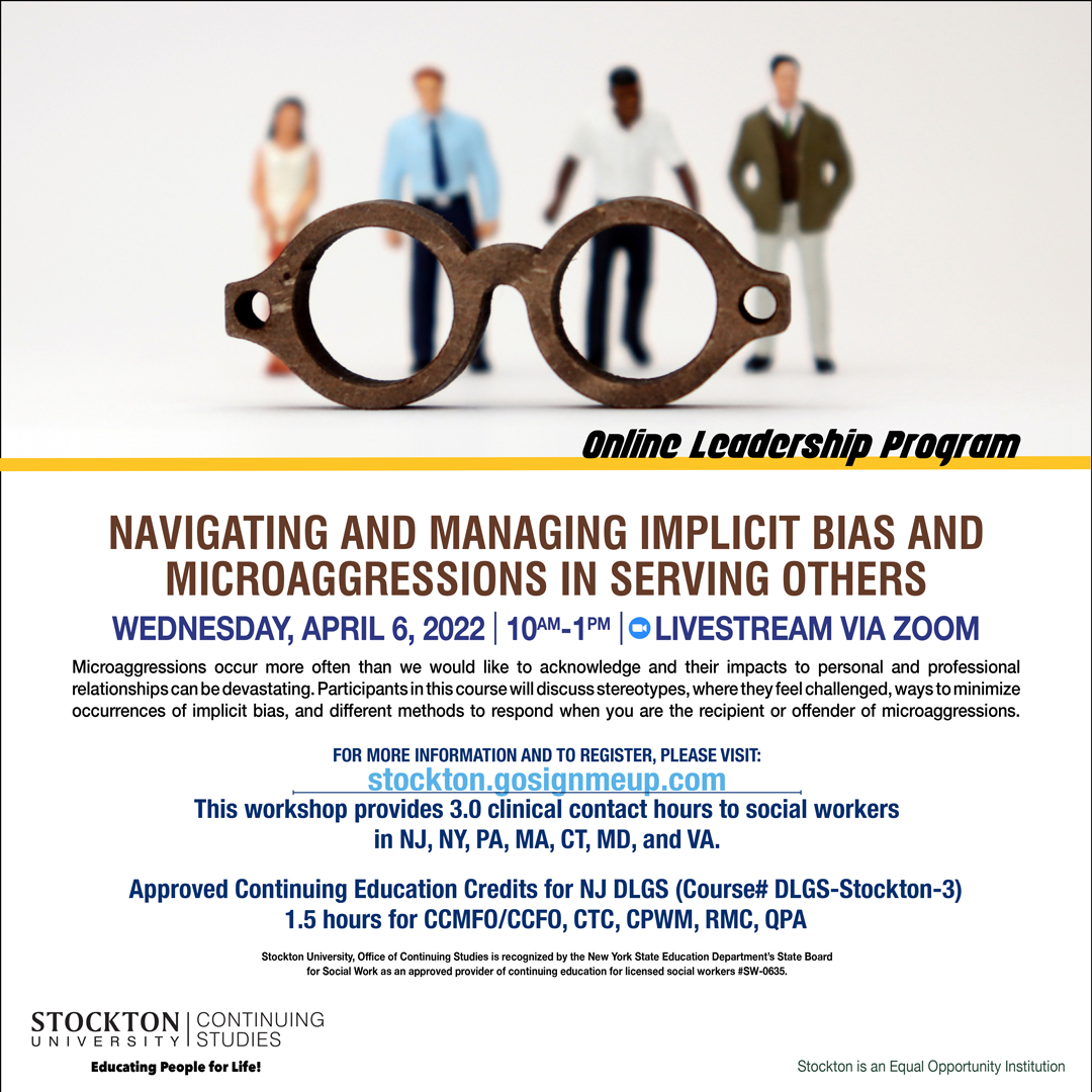 For more information on how the Office of Continuing Studies can partner with your organization to provide collaborative or customized training in Leadership, DEI, or other professional development opportunities, please contact cs@stockton.edu or call 609-652-4227.