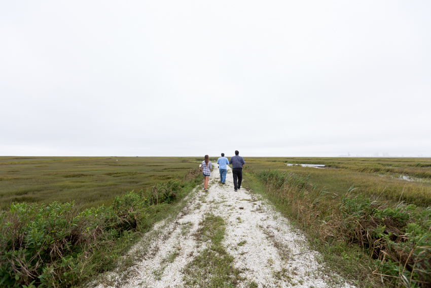 Lester Block, John Rokita and Melissa Laurino walk the terrapins to a remote saltmarsh where they're unlikely to encounter roadways on their way to nest.