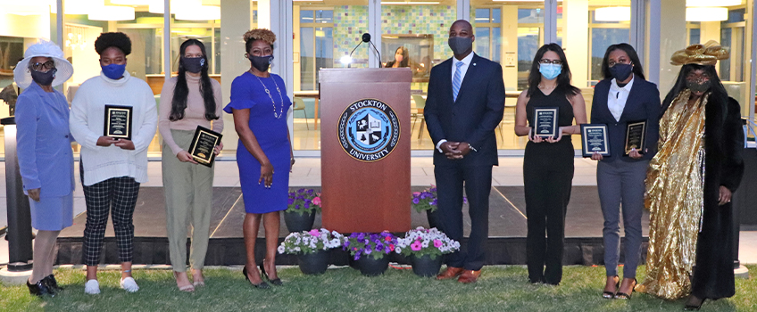 Atlantic City, N.J. - As the sun set, staff, faculty, students and alumni celebrated the accomplishments of students of color engaging in high impact practices at Stockton University, shining a light on the power of creating impactful experiences for underrepresented communities during the inaugural Equity in Academic Achievement Award Dinner and Fundraiser on April 23 in the Atlantic City Residential Complex Quad.
