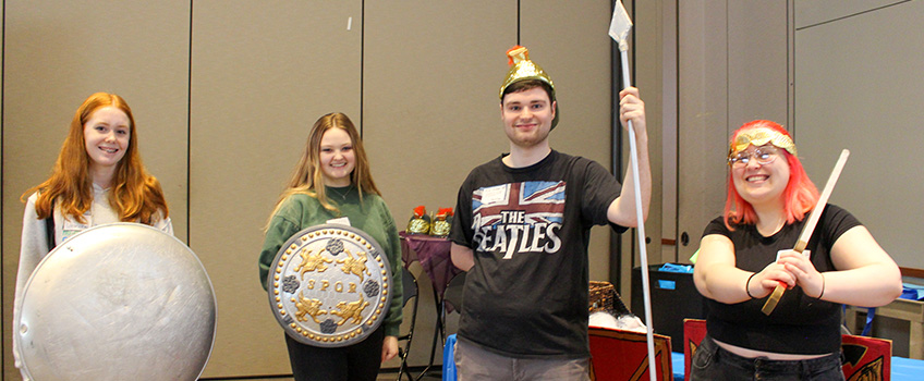 Latin Day was developed by Katherine Panagakos, assistant professor of Classics, to introduce Stockton’s Classics program to area high school students studying Latin. Students in both her Latin and Ancient Greek classes run the stations that the high school students visited.