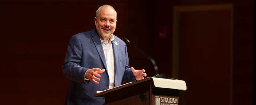 Galloway, N.J. — President Joe Bertolino highlighted accomplishments from the previous year and focused on the needs ahead as he laid out his vision for Stockton in his second annual State of the University address on Nov. 12.