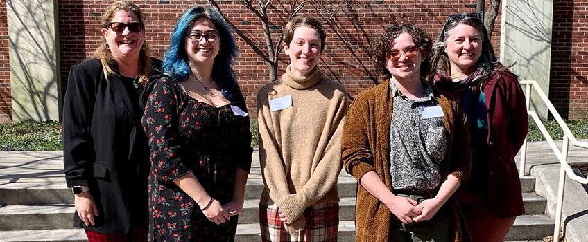 Students Jennah Figueroa, Cassius Navarro and Mary Reitmeyer were a part of the “Intersectional Literary Analysis” panel discussion at the colloquium, which was held at The College of New Jersey in March. Reitmeyer was also awarded an Emerging Scholar Prize.