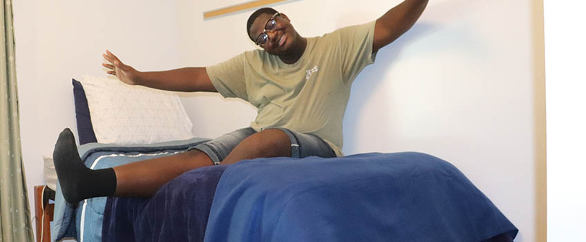 When Stockton University freshman Terron Oglesby (pictured), of Egg Harbor Township arrived at his new room in Housing V for the Educational Opportunity Fund (EOF) summer program he found a boxwaiting for him filled with new extra-long sheets, a comforter, pillows, towels, a matching fleece throw and even a storage caddy and a clip fan.